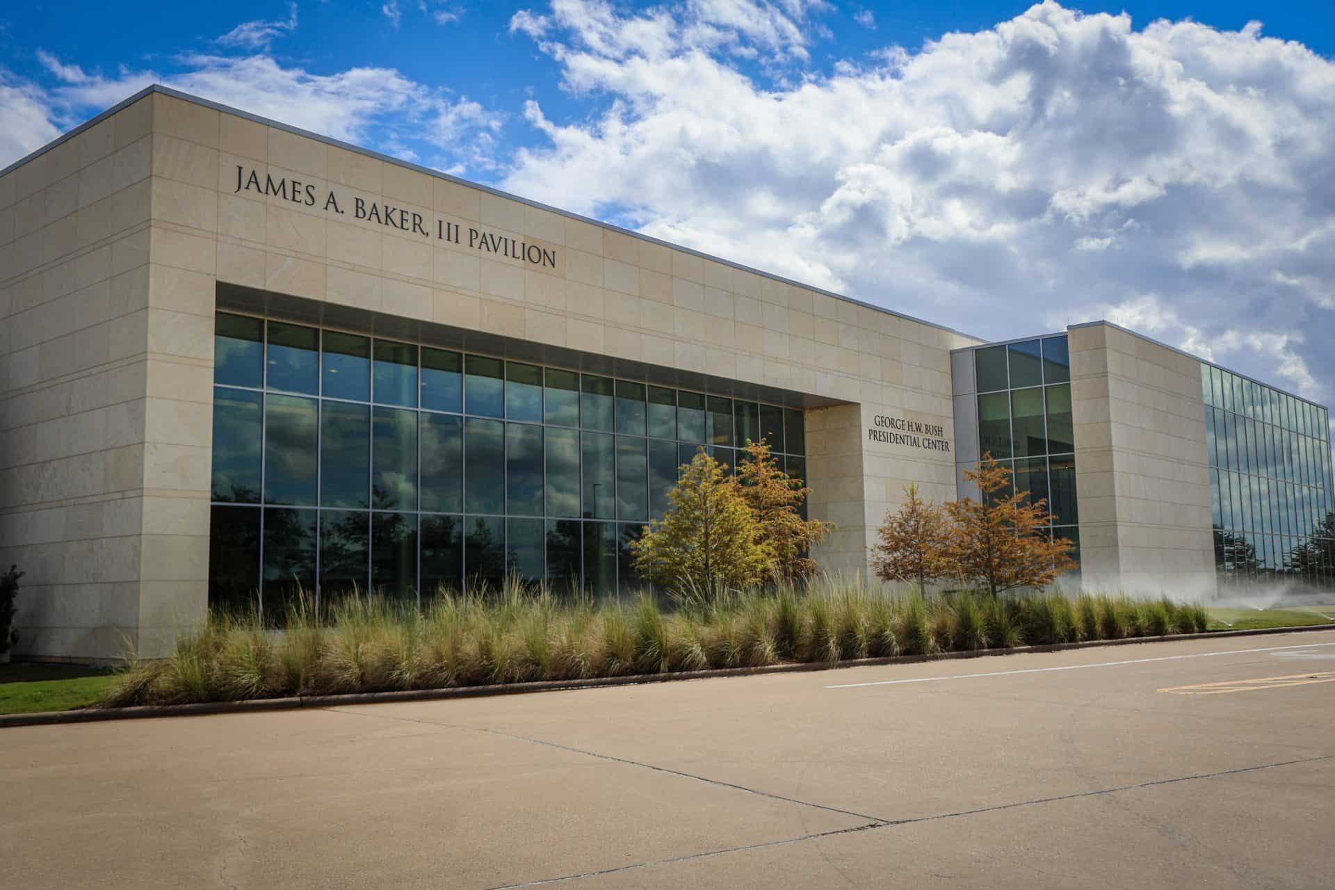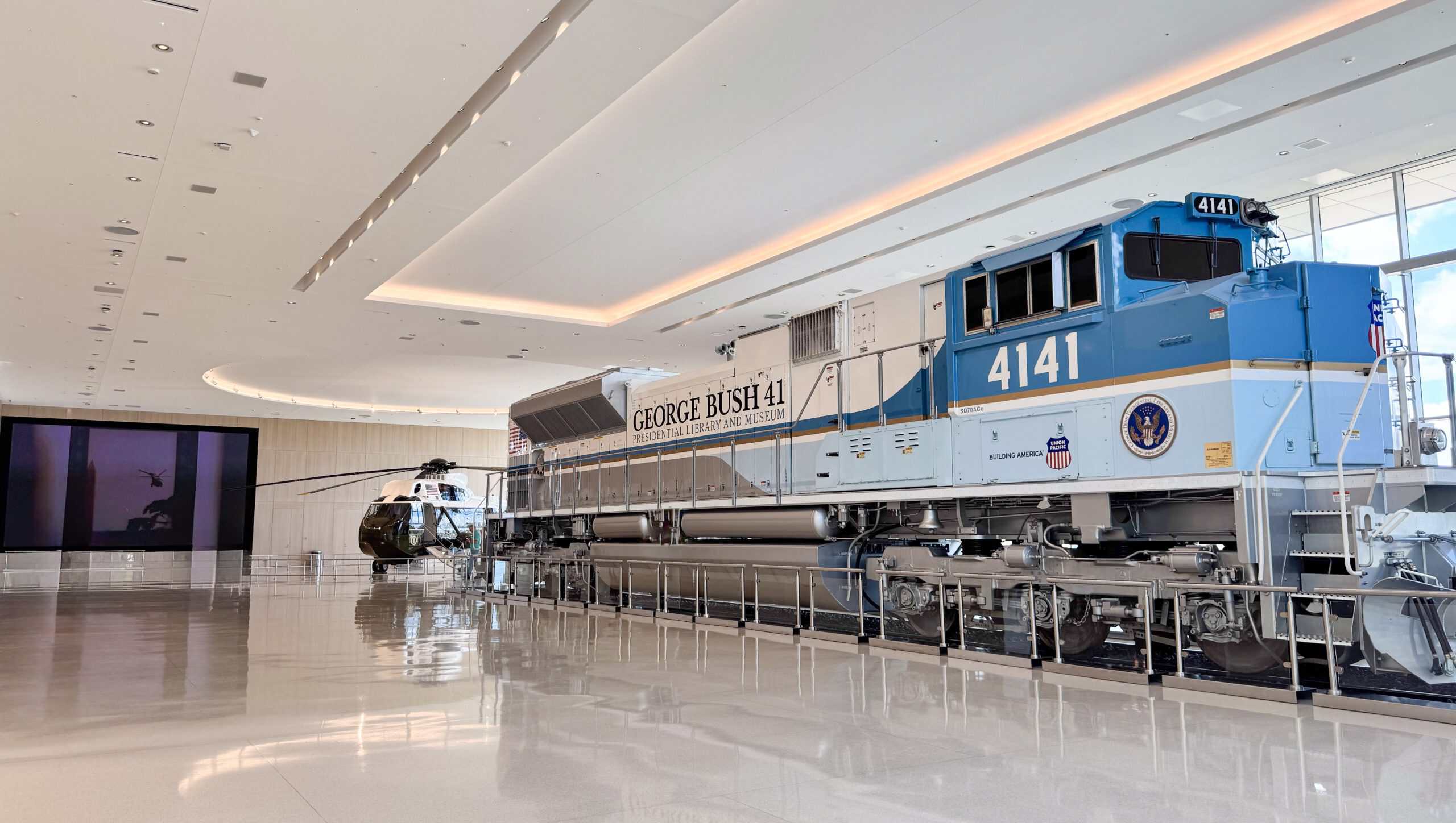 This major expansion to the George H. W. Bush Presidential Library & Museum introduces a new 29,000 square-foot pavilion — known as the James A. Baker III Pavilion — designed to showcase two iconic artifacts: the Union Pacific 4141 locomotive and a retired Marine One helicopter once used by President George H. W. Bush.